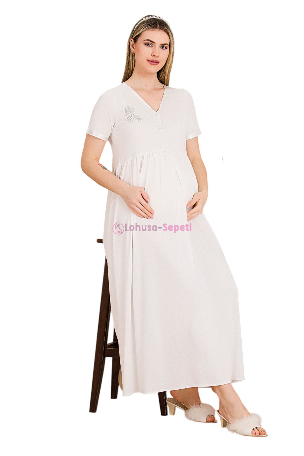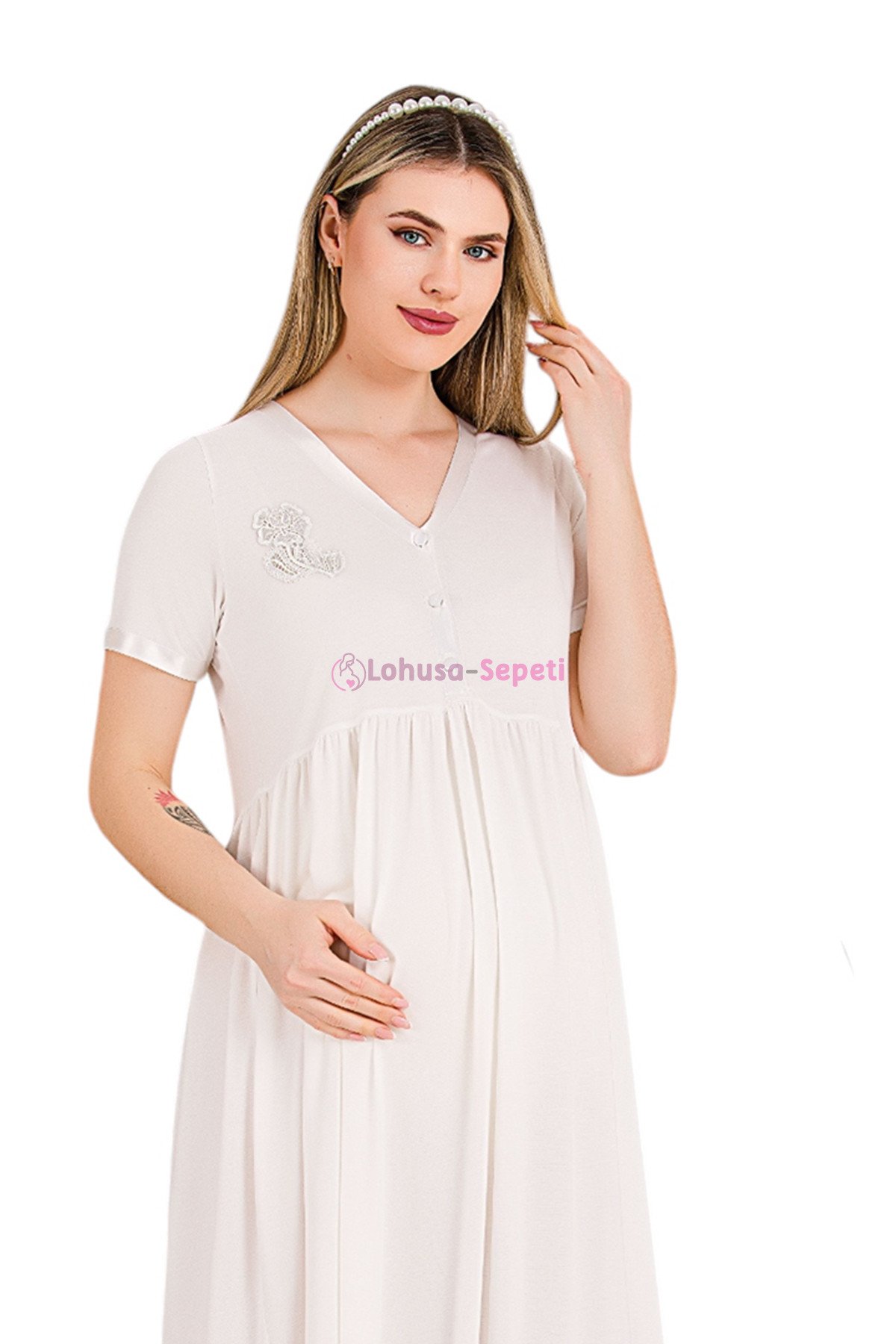 Lohusa Hamile Giyim, kısa kollu ve dantel detaylı lohusa gecelik ile tanışın! %80 pamuklu dokusu ve pratik emzirme özelliğiyle en şık lohusa gecelik modelleri Lohusa-Sepeti.com da.
