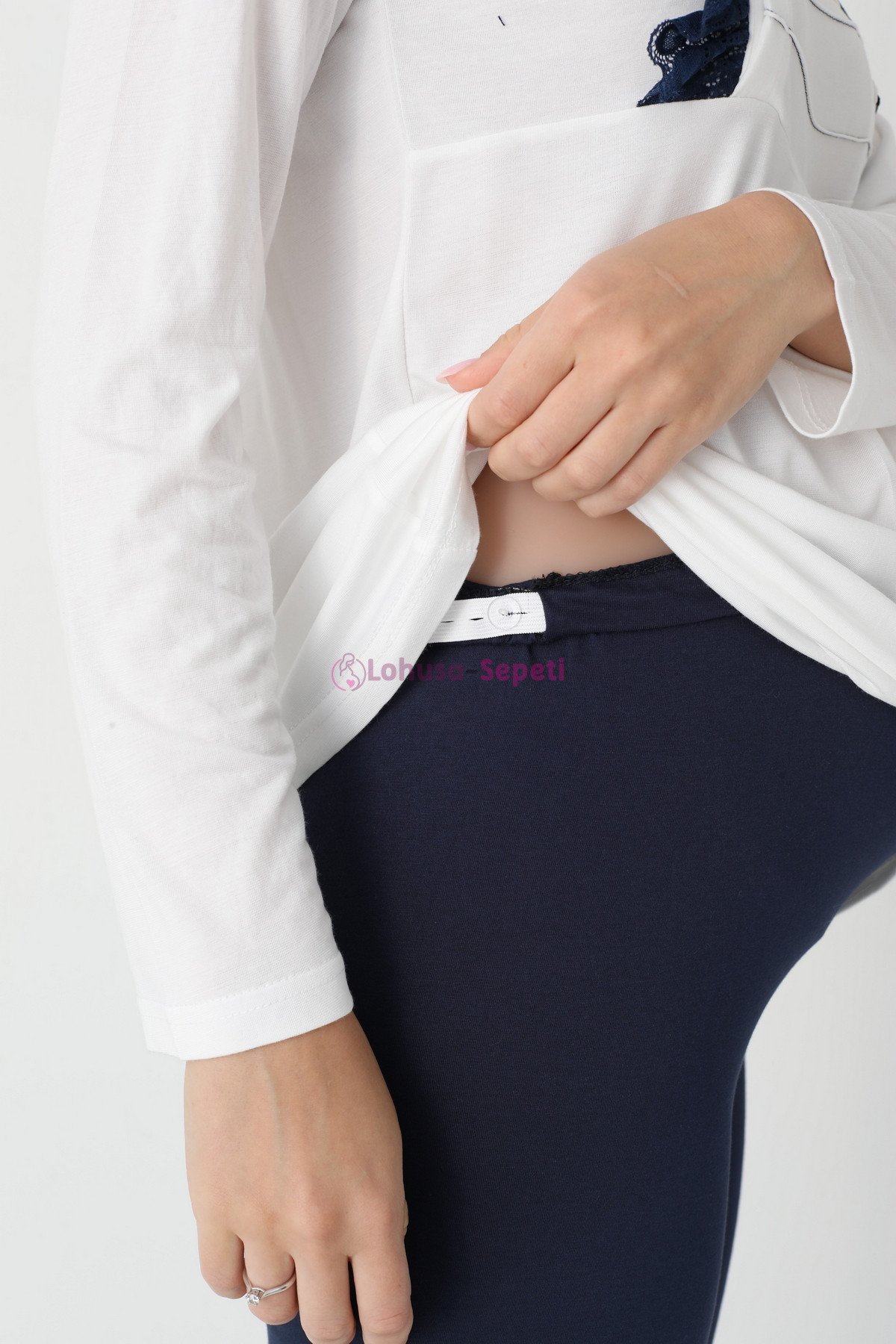 - Ayarlanabilir Bel Konforu: Pijama altı, değişen karın formuna uyum sağlayan esnek yapısıyla hem hamilelikte hem de doğum sonrasında vücudunuzu sıkmadan sarar.