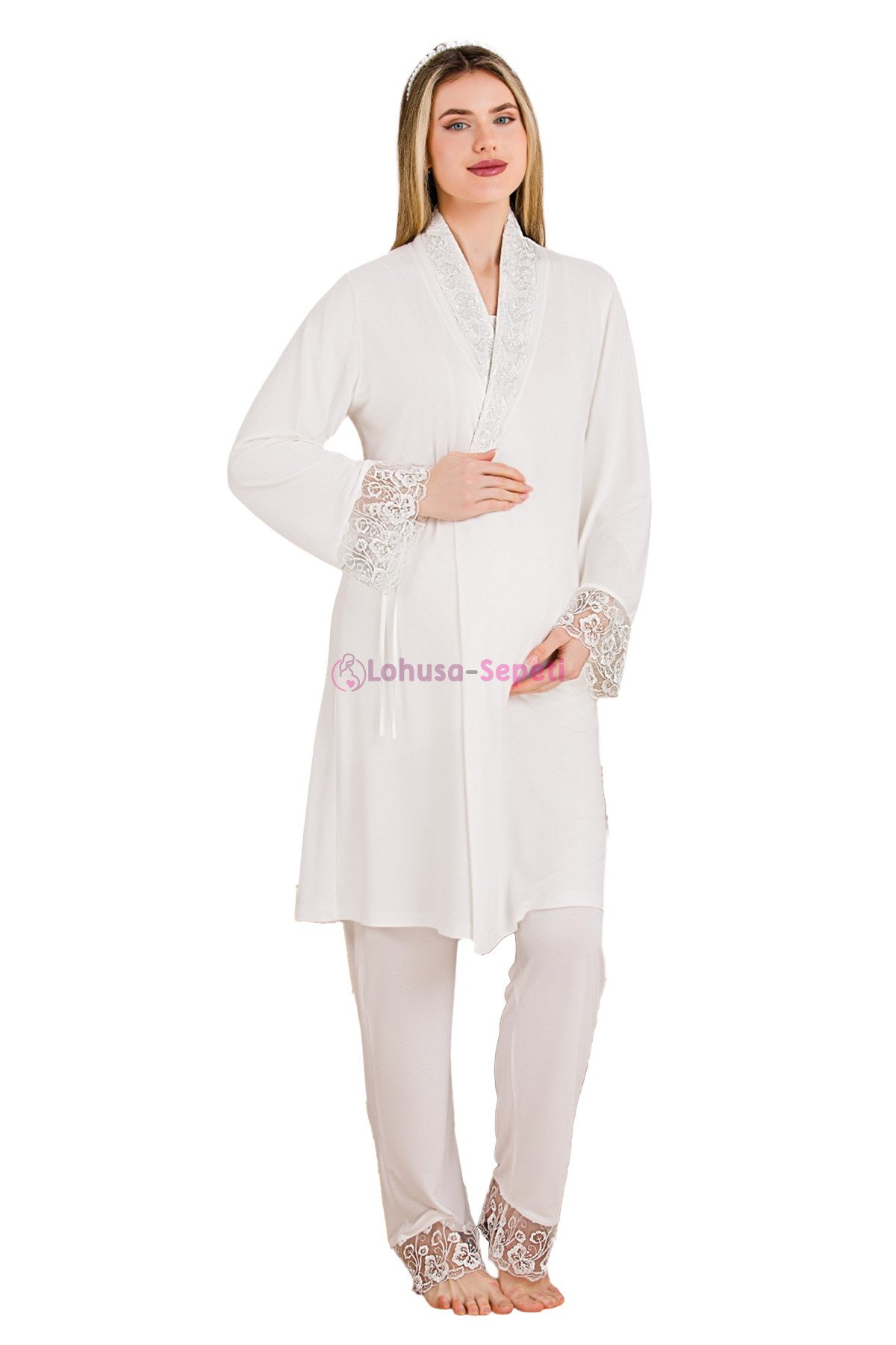 3'lü Sabahlıklı Lohusa Pijama Takımı: %100 Pamukla Lüks Konfor ve Pratik Emzir..